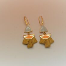 Toutes les parties métal, en fonction des bijoux, sont en laiton dorés à l’or fin 24 carats ou plaqués argent 10 microns 925, palladium, bronze blanc, et sont garantis sans nickel. Ils ont une très bonne tenue dans le temps et s’entretiennent comme l’argent ou l’or ( -Miror- par exemple).