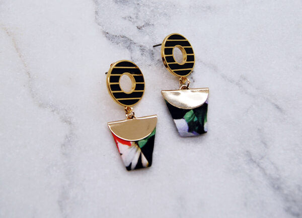 Boucles d’oreilles Joris noir, or, soie fleurie L’Orangerie Bijoux