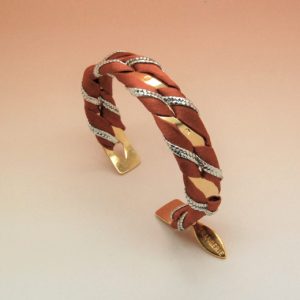 Bracelet Annabelle or et argent modulable L’Orangerie Bijoux – Bijou modulable, passementerie fils d’or et d’argent de la maison Camus, chaines laiton doré à l’or fin 24 carats, bracelet 3 tours ou bijou de tête, – A porter soit en bracelet à enrouler autour du poignet, soit en bijou de tête, 57 cm de long, chaîne de réglage longueur 8 cm, réglable de 48 à 57 cm, fermoir mousqueton – Bracelet ou bijou de tête.