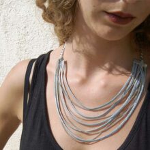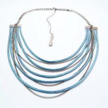 Collier Olympe bleu ciel argent fait main ByrdCeeDesign – Collier multi rangs tresse bleu ciel et argent, chaines multi rangs, fermoir mousqueton, réglable sur 10 cm, pendentif dos.