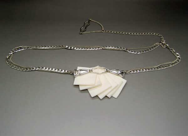 Headband bijou mariage ivoire Manon, réglable jeu de chaines et estampe géométrique argent, plissage tissu ivoire à positionner sur le côté, réglable de 52 à 61 cm, chaine et estampe géométrique argent, longueur 20 cm, à faire tomber sur le côté ou milieu dos, fermoir mousqueton.