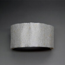 Bijou mariage bracelet manchette lamé de soie Annie, manchette gris perle et argent, finitions cuir agneau plongé ivoire, hauteur manchette 4 cm, réglable de 16 cm à 23 cm, fermoir mousqueton.