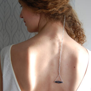Headband mariage Audrey soie et argent bijou de dos ByrdCeeDesign